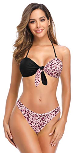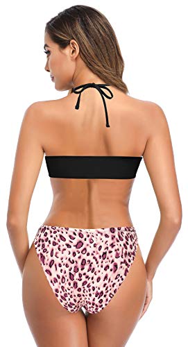 SHEKINI Traje de Baño de Dos Piezas Mujer Bandeau Ajustable Bikini Top Sexy Halter Acolchado Bikini Set Cintura Baja…