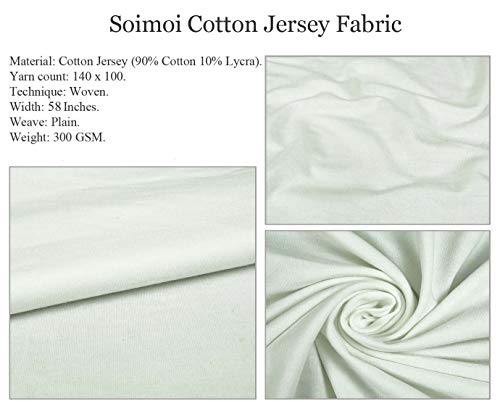 ✅ Esta tela de algodón Soimoi Jersey es una hermosa tela elástica de 4 vías adecuada para vestidos, polainas, disfraces, ropa de baile y otras prendas de vestir de mujeres. Tiene un estiramiento normal tanto en el ancho como en el lado de la longitud