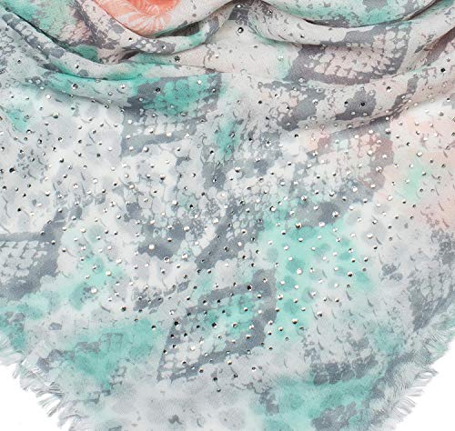 Gran pañuelo cuadrado con una mezcla de motivos de leopardo, serpiente y palmeras con aplicación de estrás
