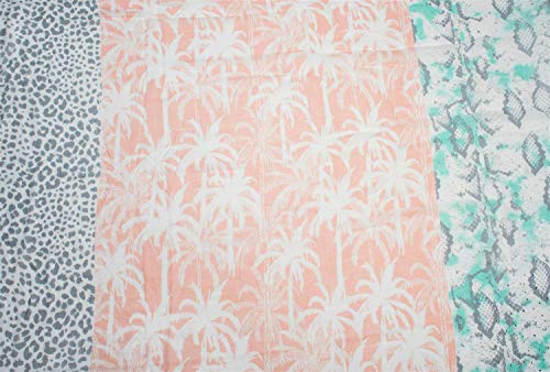 Veraniego pañuelo cuadrado XXL de mujer con motivo estampado de leopardo, serpiente y palmeras con aplicación de estrás y deshilachados alrededor.
