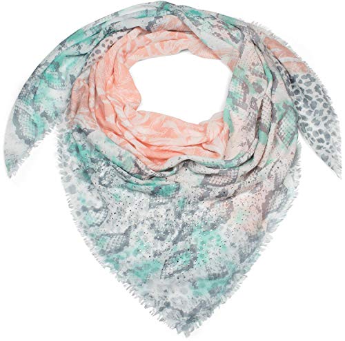 styleBREAKER pañuelo cuadrado XXL de mujer con motivo estampado de leopardo, serpiente y palmeras con aplicación de…