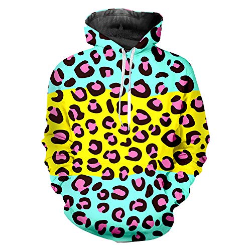 Sudadera Con Capucha Para Amantes Unisex Sudadera Con Estampado De Leopardo Azul Amarillo Con Estampado 3D Novedad…