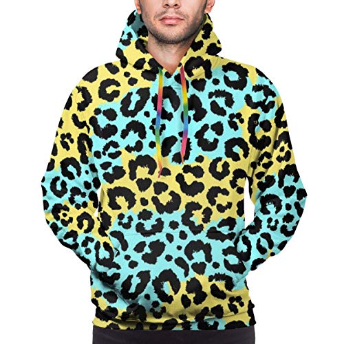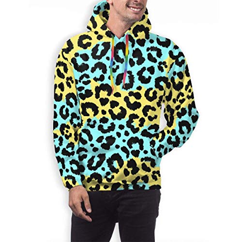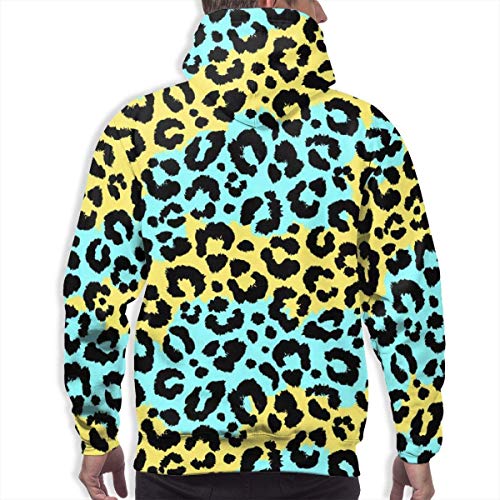 Sudadera con capucha para hombre, estampado de leopardo, color azul y dorado con estampado 3D, con bolsillo