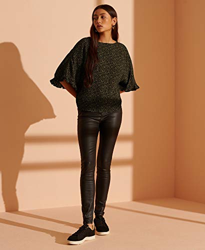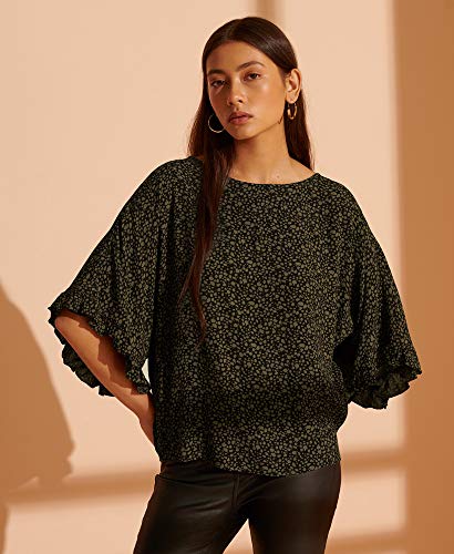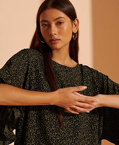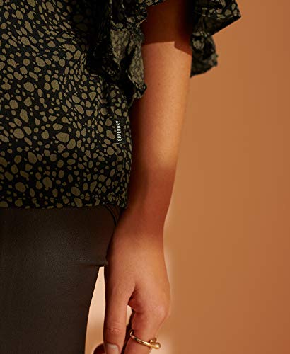 Superdry Mujer Camiseta de Manga Ancha Lola Leopardo Verde 36