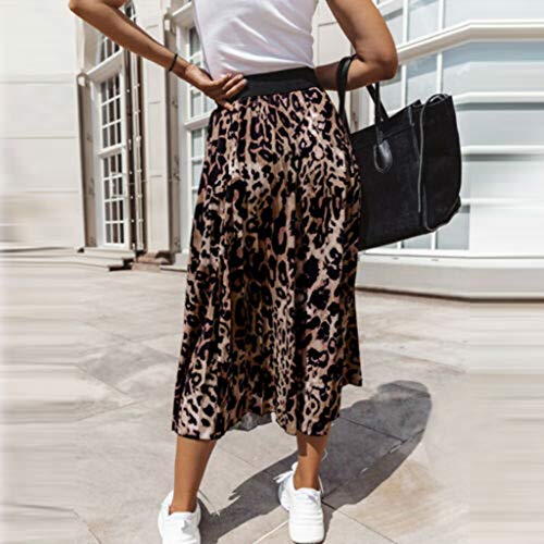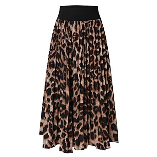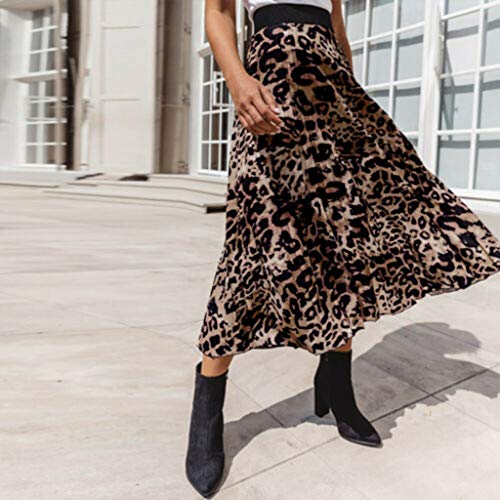 Sylar Falda Larga para Mujer con Cintura Elástica Falda Larga Mujer A-Line Vintage Falda Plisada Estampado De Leopardo…