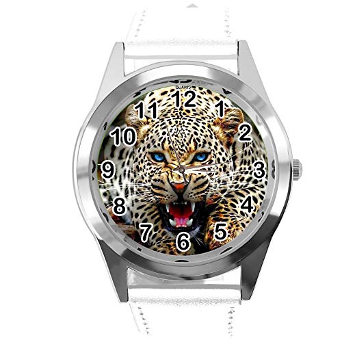 TAPORT® Reloj redondo de cuero blanco para los fans del leopardo