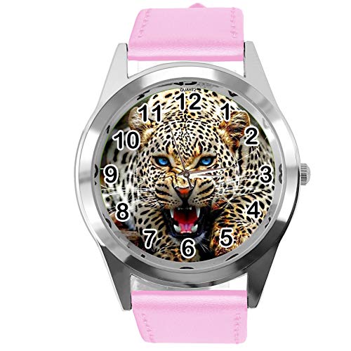 TAPORT Reloj redondo de cuero rosa para los fans del leopardo