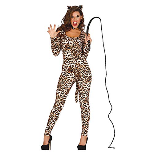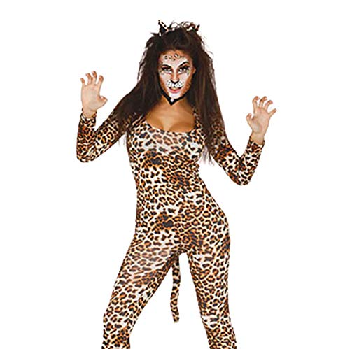 Este sexy disfraz de leopardo para mujer de una sola pieza es un disfraz de gran calidad. El artículo incluye cinta de pelo, traje de jumpsuit y está fabricado en 100% poliéster.