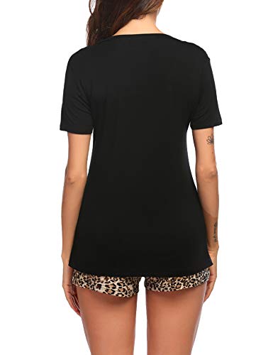 Pijama para mujer con pantalones cortos y camiseta de encaje, ropa de noche de manga corta
