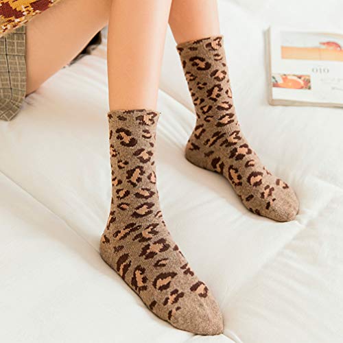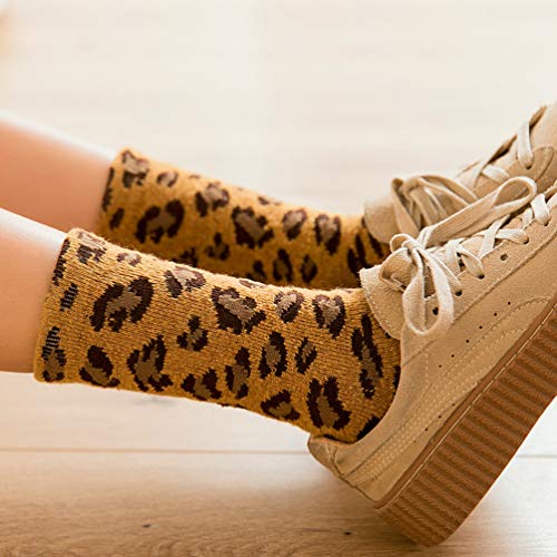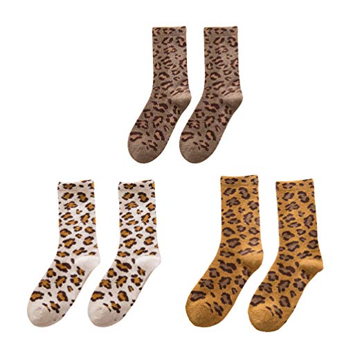 3 pares de calcetines cálidos para otoño e invierno con estampado de leopardo, para niñas y mujeres (amarillo, caqui, beige, 1 par)