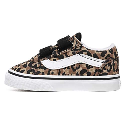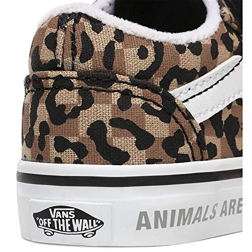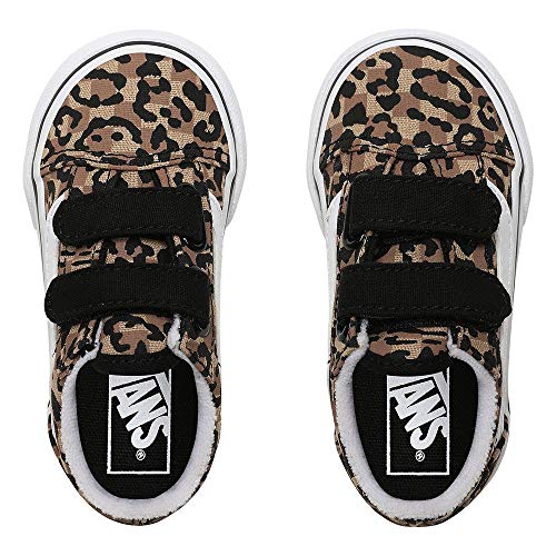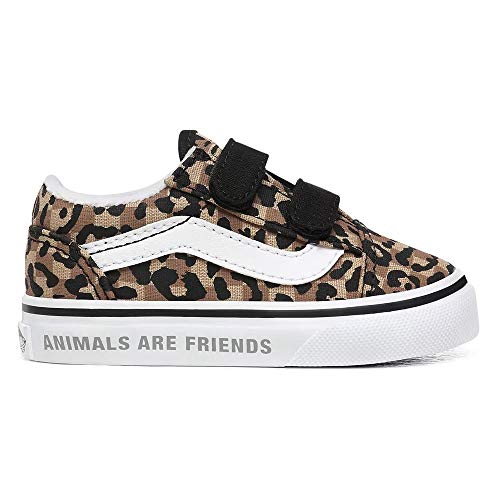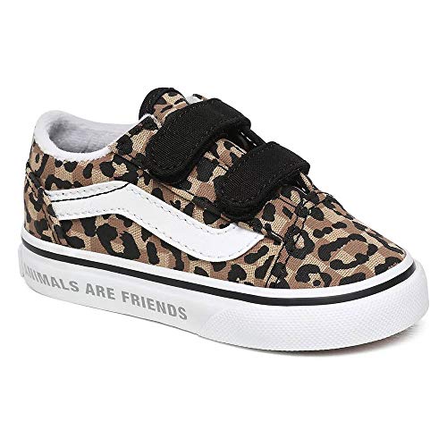The first to bear the iconic side stripe, the Vans Kids Animal Checkerboard Old Skool V is a low top shoe with two hook-and loop closures for kid-friendly entry. Es lined, tiene almohadillas acolchadas para mayor comodidad, reforced toecaps to withstand and repeated wear, and features the Vans firnature waffle outsole for firmer grip. It has an animal print. Material: lona.