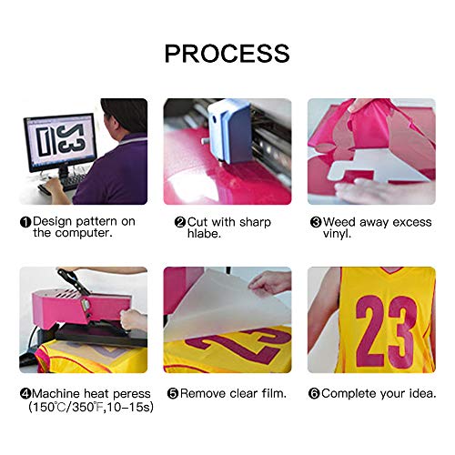 【FÁCIL DE CORTAR, DESHERIZAR Y TRANSFERIR】 Adecuado para todo tipo de máquinas de corte, la prensa en caliente o el hierro doméstico se pueden transferir en caliente, como Cricut, Silhouette Cameo, Portrait, Curio. Lo más importante es que el respaldo adhesivo sensible a la presión le permite eliminar fácilmente incluso letras pequeñas y diseños finos.