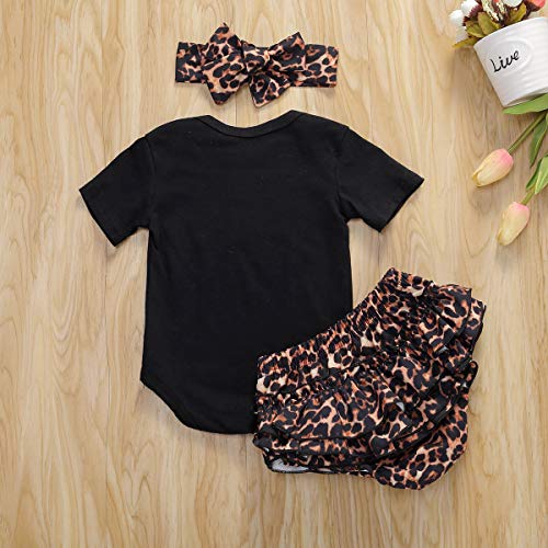 WangsCanis Ropa para bebés recién Nacidos Impresión de Letras Body Romper Ruffles Leopard Shorts Hair Band Set 0-18M