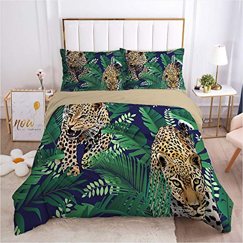 WSKMHK Leopardo Verde 3 Piezas 3D Modelo Poli Colcha De Algodón Adultos Adolescentes Dormitorio Camas Cremallera con…