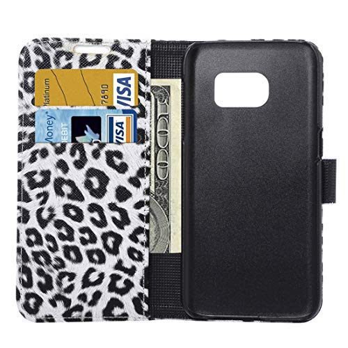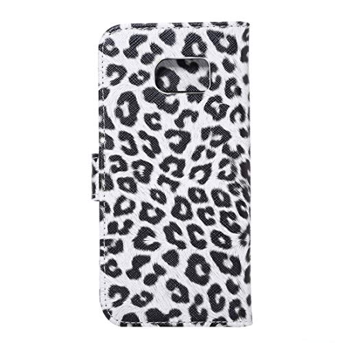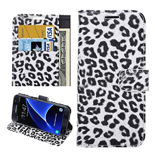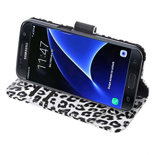 Multifuncionales teléfono celular casos y fundas para G930 leopardo Galaxy S7 / Textura horizontal de cuero del tirón del caso con el sostenedor y ranuras para tarjetas y monedero (blanco)